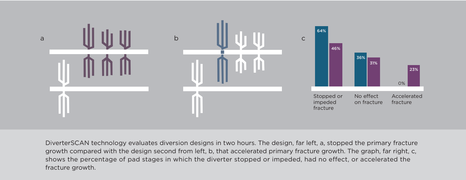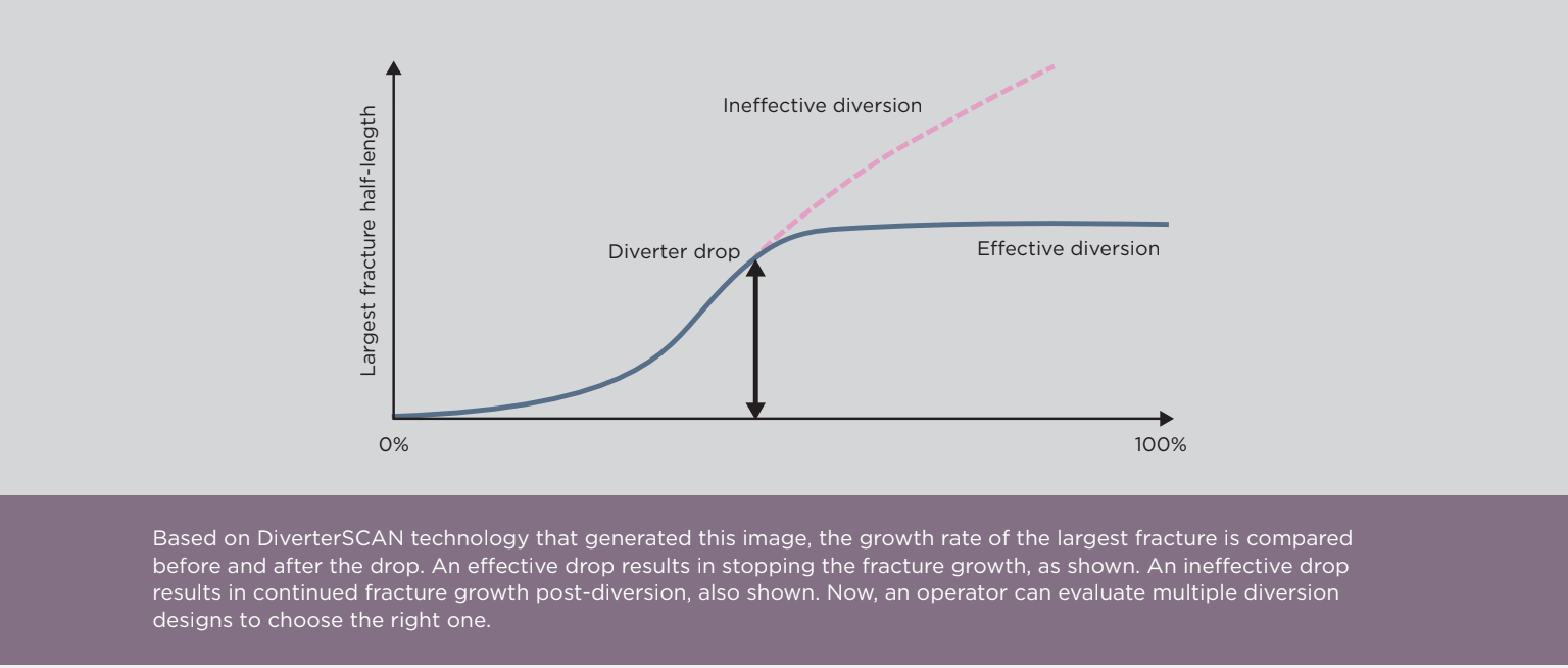 Once fracking concluded on a stage, a team of our geoscientists and completion engineers finished the data processing and quickly analyzed the individual diverter drops. The team immediately let the operator know whether the diversion stopped or had no effect on the largest fracture growth in that stage. We evaluated several diversion designs, identifying the design that provided the optimal diversion. With DiverterSCAN technology, the operator made an informed, better decision about the right diversion design.