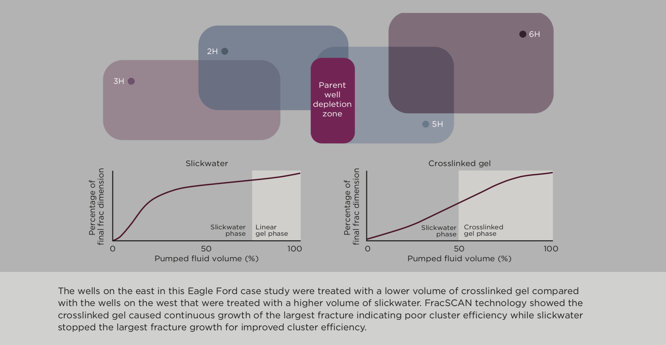 With the fracture map and DiverterSCAN technology, you can compare the largest fracture’s growth rate before and after a diverter drop so you can determine the success of a given design. A successful diversion results in stopping or impeding the fracture growth. Unsuccessful diversion results in the largest fracture continuing to grow post-diversion. By knowing these two scenarios, our customers have realized a 10% to 30% increase in production by quickly identifying the optimal diversion design to implement on subsequent pads.
